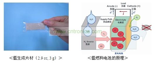 此次開(kāi)發(fā)的氫燃料電池,使用了加水即可產(chǎn)生氫的固體,可利用水的合成進(jìn)行發(fā)電,因此,發(fā)電時(shí)的生成物僅僅是水(水蒸氣),不會(huì)產(chǎn)生二氧化碳和有害物質(zhì)(揮發(fā)性有機(jī)化合物:VOC)。廢棄時(shí)亦可作為一般垃圾處理,是極為環(huán)保的燃料電池。