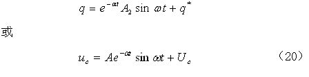 前面已經(jīng)指出,齊次微分方程(12)式僅表示電容Cs充滿電后,輸入電壓等于0時(shí),電容兩端電壓或存儲電荷隨時(shí)間變化的過程,即,當(dāng)t = 0時(shí),q從最大值開始隨時(shí)間變化的過程。但齊次微分方程(12)式并不完全表示電容Cs充、放電的全過程,我們仔細(xì)觀察(17)式便知:在LC電路中,當(dāng)t = 0時(shí),如果q為最大值,電容一定是按余弦規(guī)律放電;如果q為最小值,則電容一定是按正弦規(guī)律充電。因此,我們還需要根據(jù)初始條件來對(10)非齊次微分方程式進(jìn)一步求解。