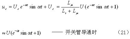 我們從(21)式以及圖3和圖4可以看出:當(dāng)電源開關(guān)管Q1導(dǎo)通時(shí),分布電容Cs兩端電壓(也是勵磁電感l(wèi)v兩端的電壓),由一個(gè)最大振幅約等于輸入電壓U的正弦振蕩電壓與一個(gè)分布電容Cs兩端電壓的半波平均值迭加。