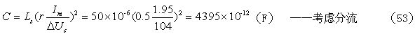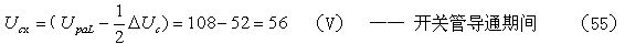 這里順便說(shuō)明一下,為什么(53)式中的分流系數(shù)取值為0.5,而不是其它數(shù)值。因?yàn)?,分流系?shù)r的取值范圍是0~1,它是一個(gè)動(dòng)態(tài)系數(shù),它的大小,除了與輸入電壓和輸出功率和RCD電路中電容、電阻的大小有關(guān)外,還與開(kāi)關(guān)管的關(guān)斷時(shí)間,以及電流大小有關(guān)系。
