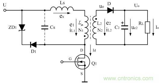 試驗(yàn)時(shí),以輸入電壓和輸出功率的最大值為條件,然后,由大到小,選擇不同容量的電容器做試驗(yàn),用示波器觀測(cè)電源開(kāi)關(guān)管D-S兩端的電壓,直到Uds與最高耐壓BVm兩者之差能滿足余量要求時(shí),為最佳結(jié)果。