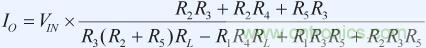 在公式1中,負載電阻影響輸出電流,但如果我們設(shè)置R1 = R3和R2 + R5 = R4, 則方程簡化為: