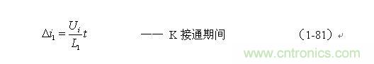 在流過正激式開關變壓器初級線圈N1的電流i1中,除了i10之外還有一個勵磁電流?i1。所謂勵磁電流,就是令變壓器鐵芯產(chǎn)生磁通量 的電流。在變壓器鐵芯中,磁通量 的變化,只與流過變壓器初級線圈中的勵磁電流?i1有關,而與流過變壓器次級線圈中的電流無關。即:在控制開關K接通期間,流過變壓器次級線圈N2中的電流i2產(chǎn)生的磁通,完全被流過變壓器初級線圈N1中的另一部分電流i10產(chǎn)生的磁通抵消。從圖1-18-c)中可以看出,?i1就是i1中隨著時間線性增長的部分(假設i2不變)。變壓器初級線圈N1中的勵磁電流?i1由下式給出: