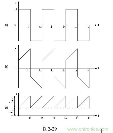 我們從圖2-29-b中可以看出,在輸入電壓作用期間,勵磁電流 是跟隨時間線性增長的;而渦流損耗電流
