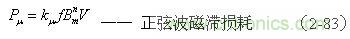 (2-83)式中, 為輸入電壓為正弦波時變壓器鐵芯的磁滯損耗[W]; 為與鐵磁物質(zhì)有關的系數(shù)(由試驗決定);