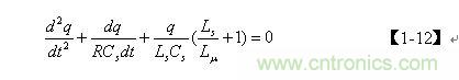 前面已經(jīng)指出,齊次微分方程【1-12】式僅表示電容Cs充滿電后,輸入電壓等于0時,電容兩端電壓或存儲電荷隨時間變化的過程,即,當(dāng)t = 0時,q從最大值開始隨時間變化的過程。但齊次微分方程【1-12】式并不完全表示電容Cs充、放電的全過程,我們仔細(xì)觀察【1-17】式便知:在LC電路中,當(dāng)t = 0時,如果q 為最大值,電容一定是按余弦規(guī)律放電;如果 q為最小值,則電容一定是按正弦規(guī)律充電。因此,我們還需要根據(jù)初始條件來對【1-10】非齊次微分方程式進(jìn)一步求解。