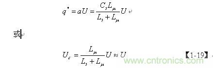 上式中的電壓 Uc實際上就是電容Cs兩端電壓的半波平均值Upa。它等于輸入電壓U在漏感Ls 與勵磁電感Lu 組成的串聯(lián)電路中勵磁電感 Lu兩端的分壓的半波平均值。由于漏感 Ls與勵磁電感Lu 相比非常小,因此,可以把 Uc看成與輸入電壓U基本相等。