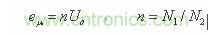 值得注意的是,當(dāng)電源開關(guān)管Q1關(guān)斷時,由于變壓器次級線圈整流濾波電路D2和C2的接入,開關(guān)變壓器初、次級線圈的等效分布電容Cs相對于濾波電容C2來說,其作用將變得微不足道;此時,由于輸出電壓Uo通過變壓器初、次級線圈的耦合和反射作用,使得變壓器初級線圈產(chǎn)生的反電動勢電壓eu 完全被鉗制在一個與次級輸出電壓Uo成正比的數(shù)值上,即: