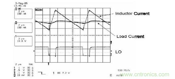 下圖說明了電感減小時(shí),在輸出電壓的變化范圍內(nèi),負(fù)載電流的波動(dòng)明顯增大。