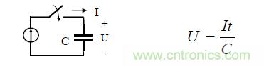 1. 當一電流流經(jīng)電容, 電容兩端的電壓逐漸增加, 并且電容量越大電壓增加越慢。