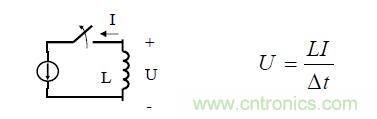 2. 當一電感上的電流突然中斷, 在其兩端會產(chǎn)生一瞬時高壓, 并且電感量越大該電壓越高。