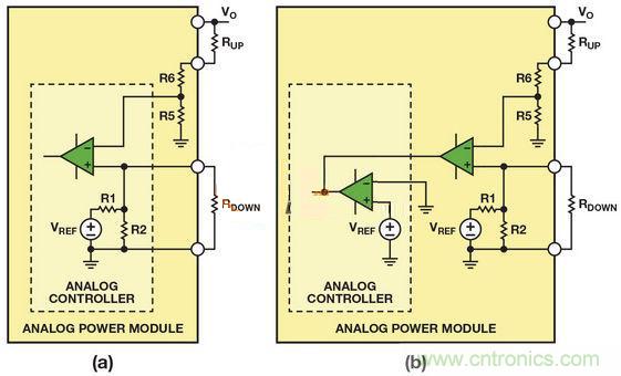 (b)帶有固定內部基準電壓的模擬控制器調整模擬電源模塊的輸出電壓