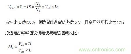 變壓器選擇很重要,因?yàn)樗鼪Q定了原邊電感的電流紋波。