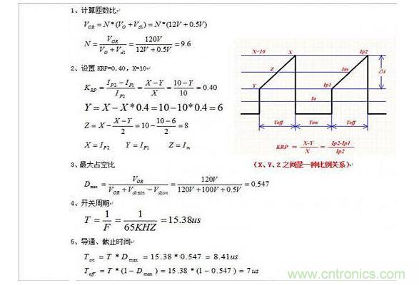 3、原邊電流的計(jì)算,其實(shí)是參考了《開關(guān)電源手冊(cè)》,見p156--p180,110W反激變壓器設(shè)計(jì),原文中定義的原邊電流,IP2=3*IP1,即KRP=0.66。本文中用X、Y、Z來描述原邊電流,即固定X=10,Y為任意值,KRP也就為任意值。