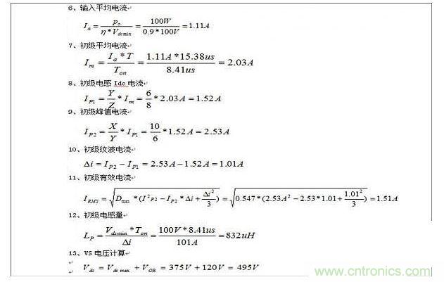 第一種方法是先計(jì)算出峰值電流、紋波電流,再通過紋波電流來計(jì)算出原邊電感量,公式:LP=V*TON/Ip。