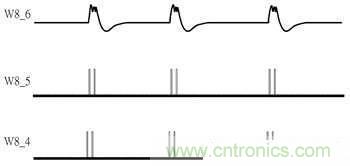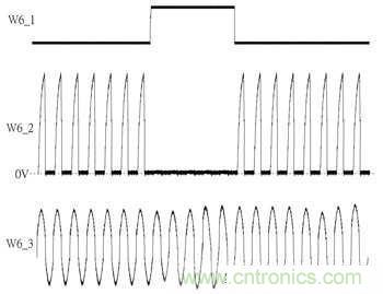 參考圖2其W6_3為線圈訊號、W6_2為S12即Q13之閘極端訊號、W6_1為Q131閘極端訊號,當RX-U1輸出高電位到Q131便會使該區(qū)段S12訊號維持在低電位,造成整流器在該區(qū)段不發(fā)生導通狀況,用意在于暫停整流動作。