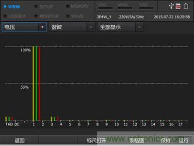 逆變器在將直流轉(zhuǎn)換成交流輸出之后,交流的電能質(zhì)量是檢測(cè)逆變器的一個(gè)很重要的指標(biāo)。輸出端的交流如果存在電能質(zhì)量問(wèn)題,不僅僅是影響逆變器使用效率,減少逆變器使用壽命,更有可能給使用者帶來(lái)生命財(cái)產(chǎn)的安全隱患。例如,由逆變器輸出的交流電往往含有諧波,下圖為E6500對(duì)交流的諧波檢測(cè)。