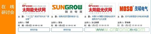 為了讓行業(yè)人士更好地了解太陽能光伏行業(yè)最新技術(shù)及產(chǎn)業(yè)潮流趨勢,除了品牌及產(chǎn)品展示外,本次在線展會還精心準備了四場語音研討會。觀眾將可以看到的是在12日上午10點,由OFweek行業(yè)研究中心資深行業(yè)分析師馮輝帶來的以《“十三五”規(guī)劃下的光伏“新征程”》為主題的第一場在線研討會。緊隨其后的是由陽光電源產(chǎn)品技術(shù)總監(jiān)郭治帶來的《組串式逆變器的前世今生》。下午3點,博士生導(dǎo)師、南開大學(xué)電子信息與光學(xué)工程學(xué)院光電子研究所孫云教授將解讀中國CIGS薄膜太陽能電池技術(shù)趨勢及產(chǎn)業(yè)化進程。此外, 13號下午15點,由深圳茂碩電氣有限公司產(chǎn)品經(jīng)理李林朗為我們解析如何提高光伏電站系統(tǒng)發(fā)電效率?