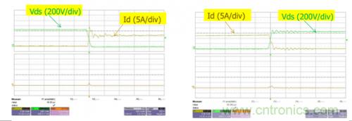 從圖4的仿真模型中可以看出,在開通和關斷的交越區(qū)域非常小,因此損耗非常小,CREE的SiC產(chǎn)品可以實現(xiàn)在通訊電源上的高效、低成本、小體積以及高可靠性的要求。