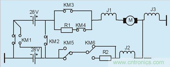 第三階段:即按下起動按鈕后的9S~15S內(nèi),起動電源車內(nèi)的兩組電瓶由并聯(lián)轉(zhuǎn)為串聯(lián),起動機兩端的電壓由28V升高到56V,起動機轉(zhuǎn)矩急劇增大,從而使渦輪轉(zhuǎn)速急劇上升。