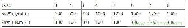 加載電機(jī)在轉(zhuǎn)速控制模式下,從0慢慢提高給定轉(zhuǎn)速0-200r/min.轉(zhuǎn)速穩(wěn)定后,在扭矩模式下,從0慢慢提高給定扭矩1-100Nm,隨后再逐次上升轉(zhuǎn)速: