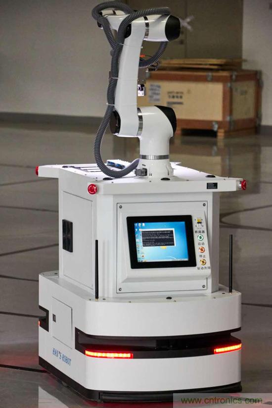 Star機(jī)器人是大族機(jī)器人產(chǎn)品線的一款明星產(chǎn)品,該機(jī)器人融合了大族自有的移動(dòng)機(jī)器人、機(jī)械臂、視覺系統(tǒng)、力控夾具等核心部件,可以實(shí)現(xiàn)手臂末端±0.2mm的重復(fù)抓取精度。機(jī)器人運(yùn)行過程中通過磁帶與激光SLAM混合導(dǎo)航,運(yùn)行靈活,機(jī)器人可以實(shí)現(xiàn)前進(jìn)、后退、原地轉(zhuǎn)向等動(dòng)作。機(jī)械臂臂展可以達(dá)到950mm。