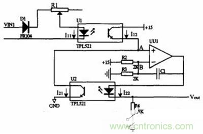 在選擇器件的時(shí)候,我們考慮到經(jīng)濟(jì)性和實(shí)用性,光電禍合器選擇了日本東芝公司生產(chǎn)的TLP521,運(yùn)算放大器選擇的雙運(yùn)算放大器TL082。