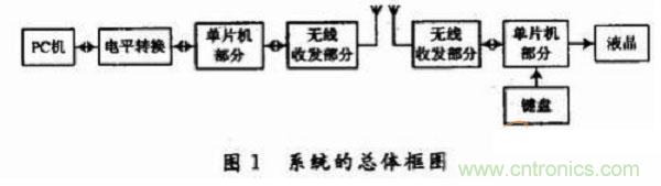 此雙工無線通信系統(tǒng)的總體框圖如圖1所示。由于此系統(tǒng)可實現雙工通信,因此它可分為兩個通信過程:PC機(上位機)通過上位機程序界面發(fā)送數據給單片機,并送給液晶屏顯示相應的數據;鍵盤輸入數據傳給單片機,接著發(fā)送給PC機,并在PC機上位機程序界面上顯示出來。