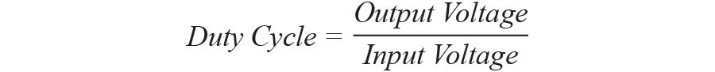 開關(guān)開啟)與關(guān)閉時(shí)間(主開關(guān)關(guān)閉)之間的比值。降壓轉(zhuǎn)換的工作周期是透過以下的公式計(jì)算而出: