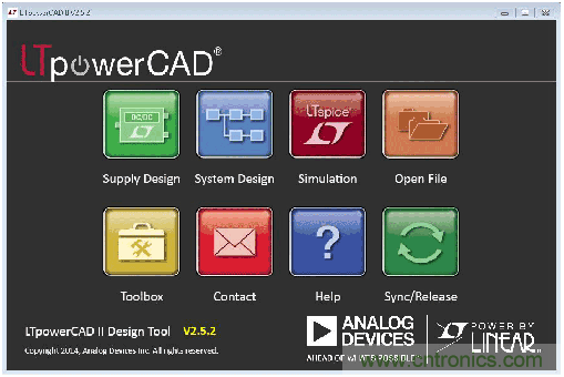 LTpowerCAD可用來為各個(gè)電壓軌提供電源解決方案。它還提供一系列參考設(shè)計(jì),以讓設(shè)計(jì)人員快速入門。LTpowerCAD可以從ADI公司網(wǎng)站免費(fèi)下載。