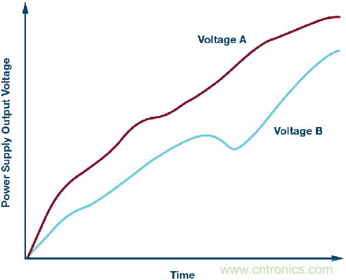 圖4. 電壓A單調(diào)上升,電壓B非單調(diào)上升。