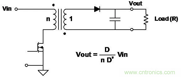 ■如降壓-升壓電路一樣工作,但是電感有兩個(gè)繞組,而且同時(shí)作為變壓器和電感。