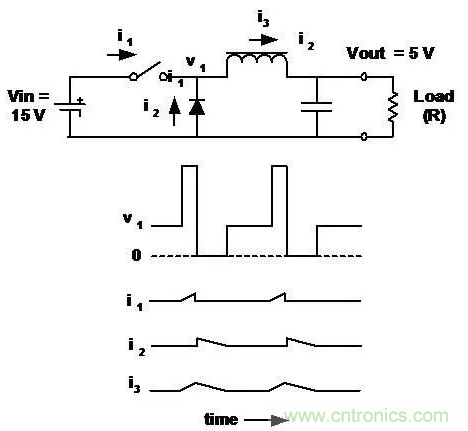 ■輸出電壓為輸入電壓乘以開關(guān)的負(fù)荷比 (D)。