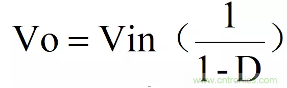■輸出電壓與負(fù)荷比(D)之間的關(guān)系不如在降壓調(diào)整器中那么簡(jiǎn)單。在連續(xù)導(dǎo)電的情況下: