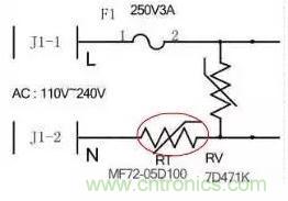 NTC是以氧化錳等為主要原料制造的精細半導體電子陶瓷元件。電阻值隨溫度的變化呈現非線性變化,電阻值隨溫度升高而降低。利用這一特性,在電路的輸入端串聯一個負溫度系數熱敏電阻增加線路的阻抗,這樣就可以有效的抑制開機時產生的浪涌電壓形成的浪涌電流。當電路進入穩(wěn)態(tài)工作時,由于線路中持續(xù)工作電流引起的NTC發(fā)熱,使得電阻器的電阻值變得很小,對線路造成的影響可以完全忽略。