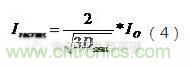 流過輸出整流器的峰值電流與平均值電流的關系: