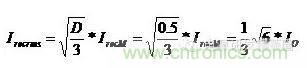 流過輸出整流器的有效值電流與峰值電流的關系: