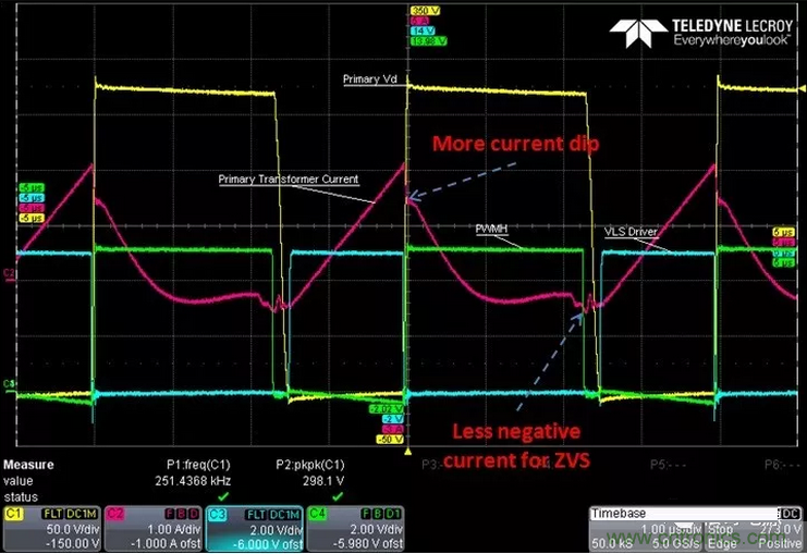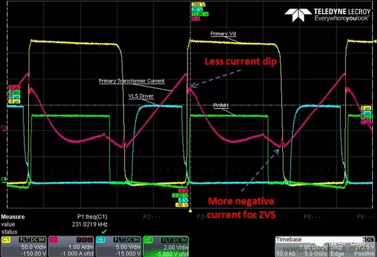 (2)、GaN的Coss 及Qoss非常小,要求實現(xiàn)ZVS開通所需要的激磁電流小,這樣就減小系統(tǒng)的環(huán)流,從而降低在功率MOSFET和變壓器中產(chǎn)生的導(dǎo)通損耗,同時也可以減小變壓器磁芯的損耗。