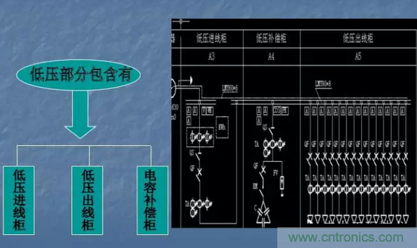 1.低壓進(jìn)線柜;2.低壓出線; 3.低壓補(bǔ)償柜