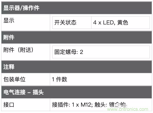顯示:開關(guān)狀態(tài) 4xLED黃色 意思是表明這個(gè)傳感器有四個(gè)黃色的LED指示燈顯示他的通斷狀態(tài),一般這類傳感器用4個(gè)LED基本上可以做到?jīng)]死角的能看見其開關(guān)狀態(tài)了。