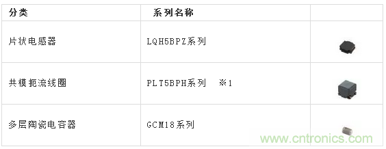 ※1:需要比1更有效果的靜噪對(duì)策時(shí)可考慮使用PLT10HH系列等其他共模扼流線圈。關(guān)于汽車(chē)的電源用共模扼流線圈,請(qǐng)參照以下選擇表。
