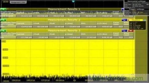 根據(jù)傳統(tǒng)電源調(diào)試經(jīng)驗,首先在該網(wǎng)絡(luò)上增加了一些去耦電容,增加電源網(wǎng)絡(luò)的阻抗余量, 保證在中頻段的電源網(wǎng)絡(luò)阻抗都能滿足該應(yīng)用場景的需求。結(jié)果紋波僅降低幾mV,改善微乎其微。產(chǎn)生這個結(jié)果有幾個可能:1、噪聲處在低頻,并不在這些去耦 電容起作用的范圍內(nèi);2、增加電容影響了電源調(diào)節(jié)器VRM的環(huán)路特征,電容帶來的阻抗降低與VRM的惡化抵消了。帶著這個疑問,我們考慮使用示波器的頻域 分析功能來查看電源噪聲的頻譜特性,定位問題根源。