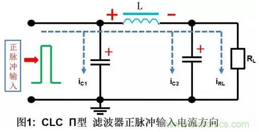 a.輸入正脈沖時(shí),先給C1充電,充電電流為ic1,迅速充到脈沖的峰值電壓Vi,同時(shí)電感器L中也有線性增長的電流,并在L中儲(chǔ)存了磁能,隨著電流的增長,儲(chǔ)存的磁能越來越多,電容器C2通過電感L也充上了電壓,充電電流為ic2,C2和C1上的電壓基本相等,負(fù)載RL中的電流IRL也是由輸入脈沖供給。