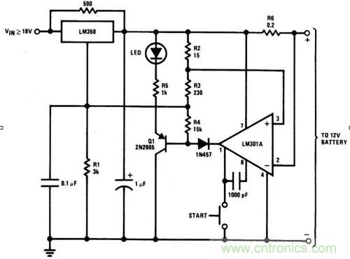 對(duì)于膠體電介質(zhì)鉛酸蓄電池來說,該電路是一個(gè)高性能的充電器。該充電器能夠迅速地為電池充電,且當(dāng)電池充滿時(shí),它可迅速地?cái)嚅_充電。最開始的充電電流限制在2A。隨著電池電流和電壓的增加,當(dāng)電流增加到150mA時(shí),充電器就會(huì)調(diào)整至較低的漂浮電壓,以防止過度充電。