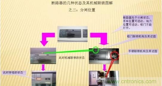 1.防止帶負(fù)荷分、合隔離開關(guān)。(斷路器、負(fù)荷開關(guān)、接觸器合閘狀態(tài)不能操作隔離開關(guān)。) 2.防止誤分、誤合斷路器、負(fù)荷開關(guān)、接觸器。(只有操作指令與操作設(shè)備對應(yīng)才能對被操作設(shè)備操作) 3.防止接地開關(guān)處于閉合位置時關(guān)合斷路器、負(fù)荷開關(guān)。(只有當(dāng)接地開關(guān)處于分閘狀態(tài),才能合隔離開關(guān)或手車才能進至工作位置,才能操作斷路器、分荷開關(guān)閉合) 4.防止在帶電時誤合接地開關(guān)。(只有在斷路器分閘狀態(tài),才能操作隔離開關(guān)或手車才能從工作位置退至試驗位置,才能合上接地開關(guān)) 5.防止誤入帶電室。(只有隔室不帶電時,才能開門進入隔室)