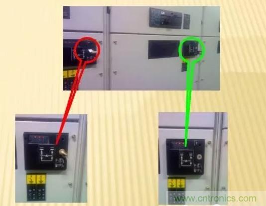 操作順序(紅的“標(biāo)示”是N電源柜,綠的“標(biāo)示”是E電源柜,黃的“標(biāo)示”是出線柜):