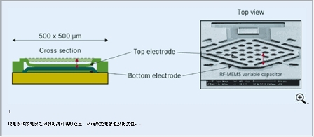 圖2:射頻-微機電系統(tǒng)的工作模式(圖中文字:頂電極和底電極之間的距離可臨時設置,從而改變電容值及阻抗值)