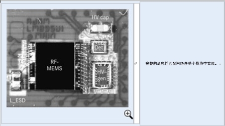 圖5:射頻-微機電系統(tǒng)試樣(圖中文字:完整的適應性匹配網絡在單個模塊中實現(xiàn))