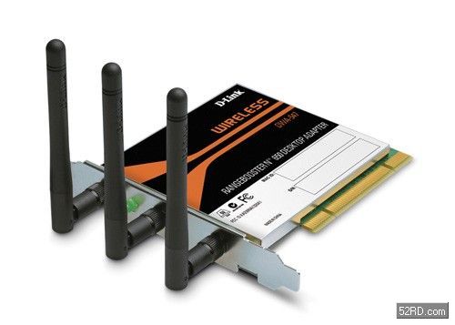 D-Link友訊的Pren/11n型無線網(wǎng)路卡:RangeBoosterN650DesktopAdapterDWA-547,圖中可看出三個直豎天線。