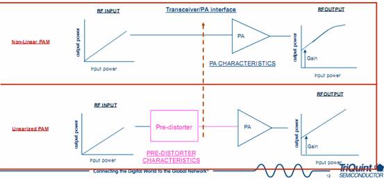 3G/4G時(shí)代對(duì)PA的要求更高,包括更線(xiàn)性的放大倍數(shù),更高的峰谷比率,更高的效率。因此下一代的趨勢(shì)是極化的EDGE向線(xiàn)性的EDGE轉(zhuǎn)移。一是它可以把相位和輔助信號(hào)合成在一起,從控制角度來(lái)看也相對(duì)簡(jiǎn)單,未來(lái)也將走向多模多頻。